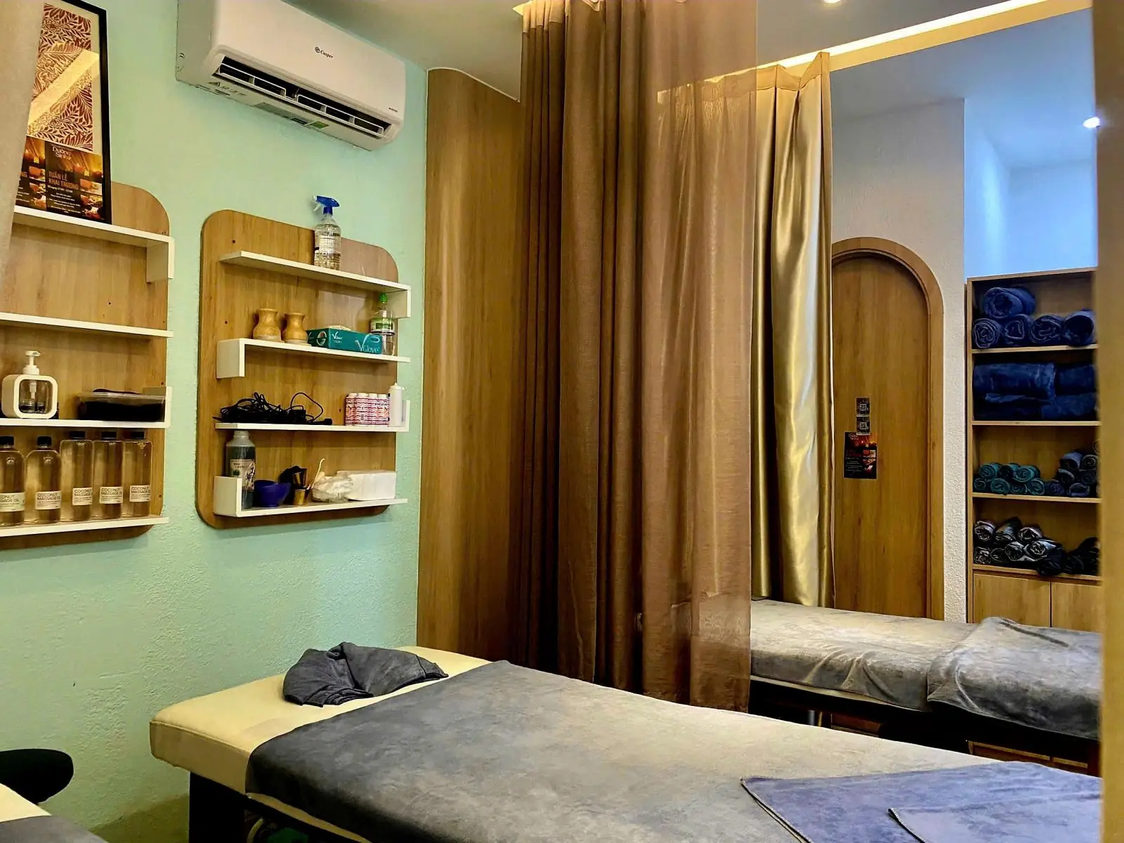 Phòng Massage Body là một không gian đa năng, được thiết kế cho các nhà trị liệu chuyên về massage thư giãn toàn thân, giảm đau cơ hoặc massage chân. Phòng này lý tưởng cho các chuyên gia muốn cung cấp nhiều loại hình massage hoặc tổ chức các buổi đào tạo thực hành.
