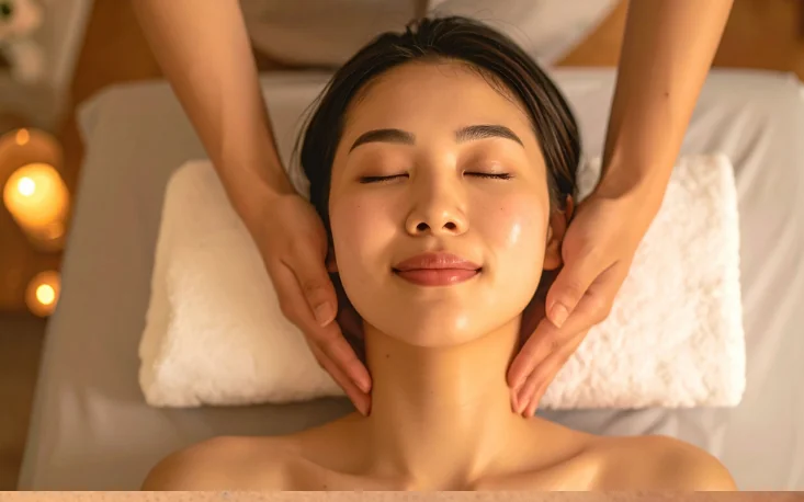 Quy trình bắt đầu với xông hơi thải độc da mặt, giúp làm ấm cơ thể, hỗ trợ tuần hoàn máu và giúp cơ bắp dễ dàng thả lỏng hơn. Tiếp theo là massage thư giãn đầu, giúp giải tỏa căng thẳng tinh thần và mang lại cảm giác nhẹ nhàng, dễ chịu.