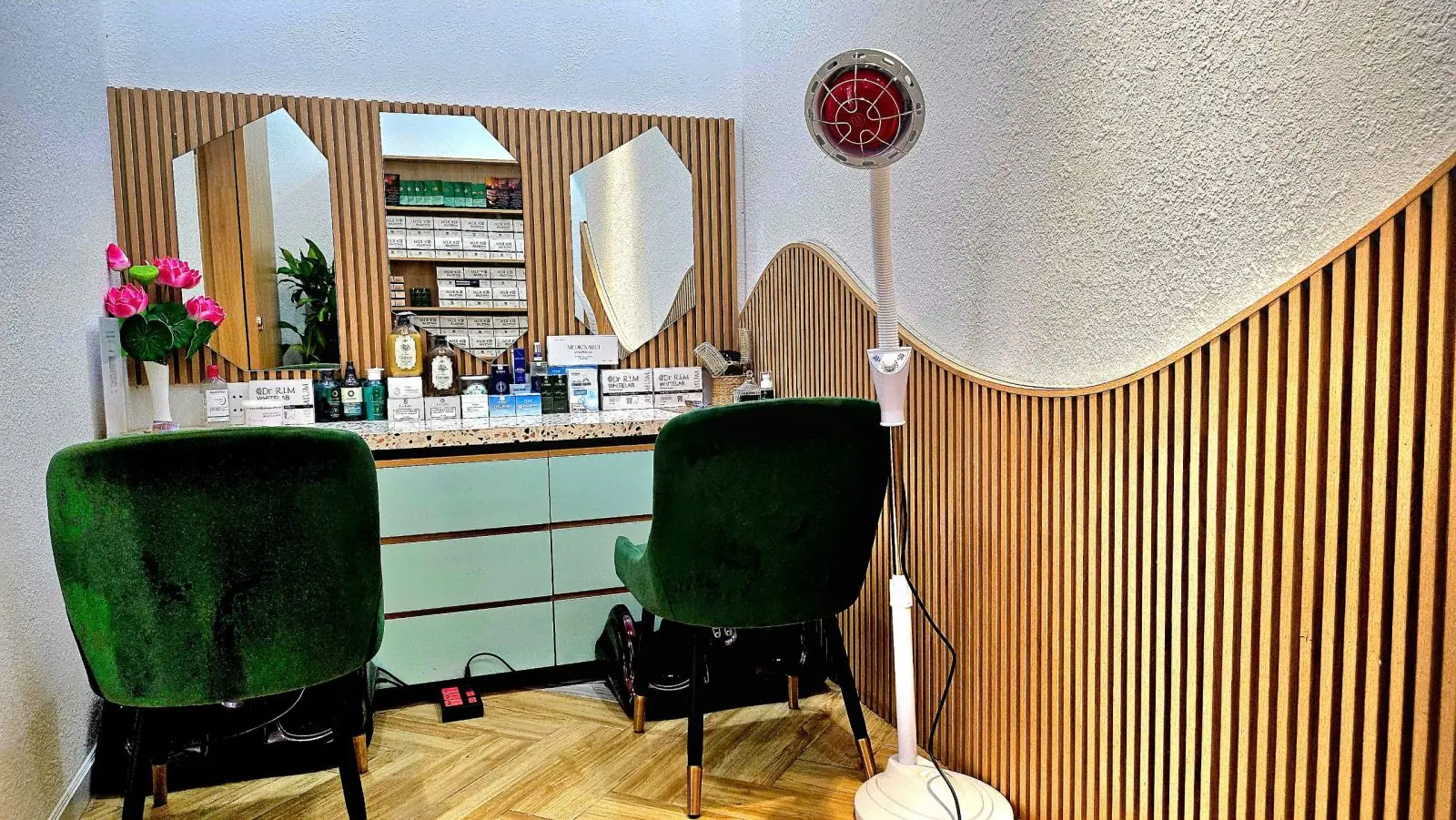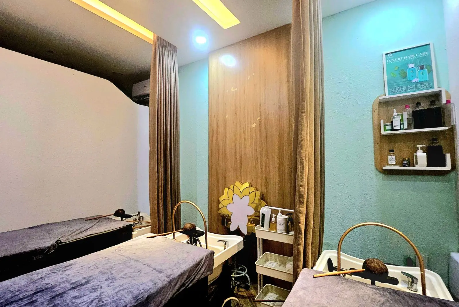 Phòng này được thiết kế để giúp bạn mang đến những trải nghiệm chăm sóc tóc và da đầu tuyệt vời, đồng thời tạo ấn tượng sâu sắc với khách hàng hoặc học viên