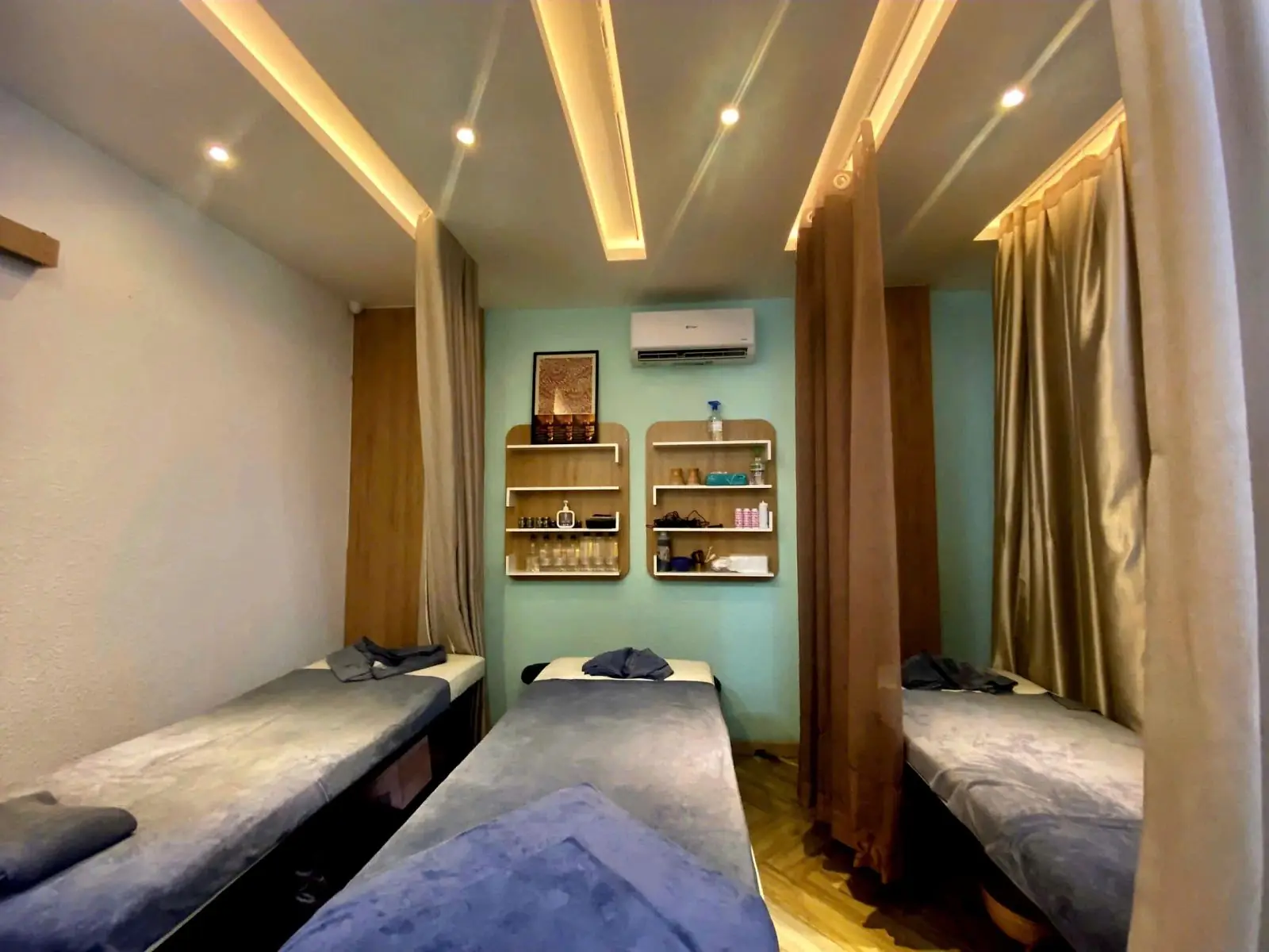 Phòng Massage Body là một không gian đa năng, được thiết kế cho các nhà trị liệu chuyên về massage thư giãn toàn thân, giảm đau cơ hoặc massage chân. Phòng này lý tưởng cho các chuyên gia muốn cung cấp nhiều loại hình massage hoặc tổ chức các buổi đào tạo thực hành.
